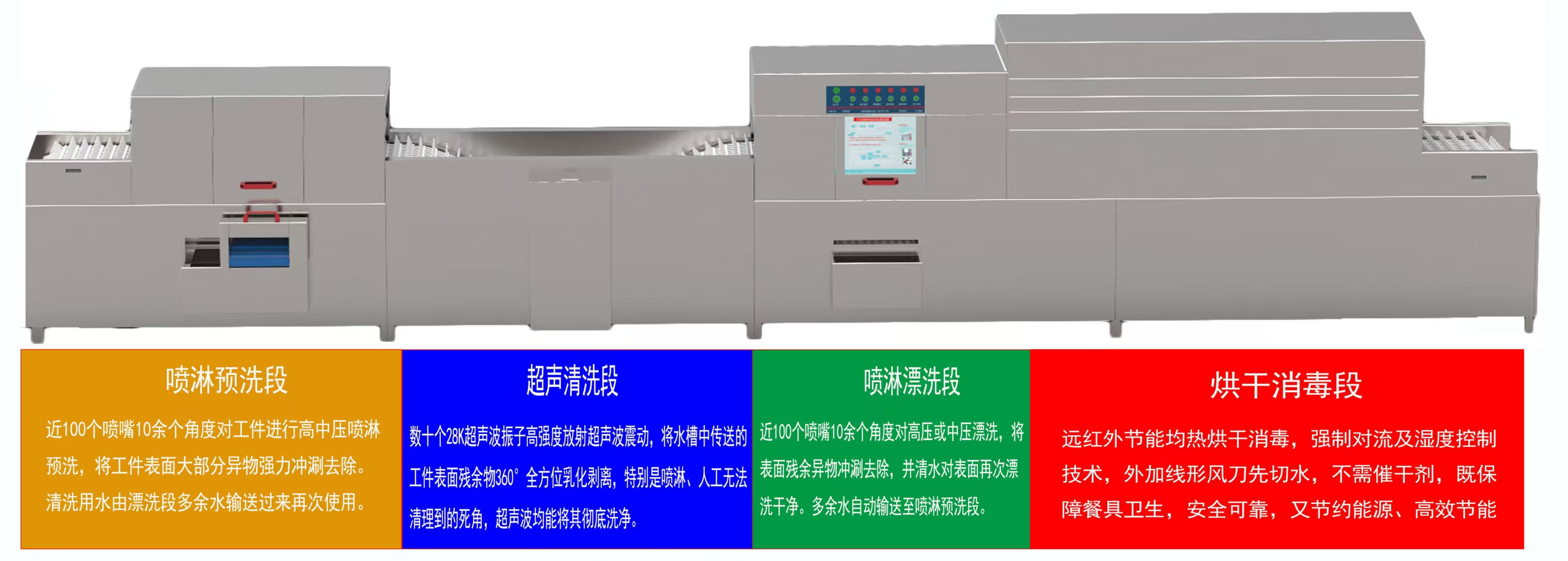 上超全自動超聲波洗碗機(jī):學(xué)校飯?zhí)酶咝н\(yùn)作與健 一、高效清洗,節(jié)省人力?學(xué)校飯?zhí)糜貌腿藬?shù)集中且數(shù)量龐大,每餐結(jié)束后堆積如山